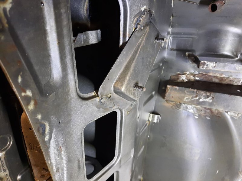 Zur Durchführung des Kabelbaums hat jetzt der Motorenbauer, bei dem der Wagen noch steht, ein vorhandenes Loch in der Stirnwand doch etwas zu großzügig aufgeschnitten/aufgebohrt.Es wird jetzt wieder auf das notwendige Maß verschlossen.