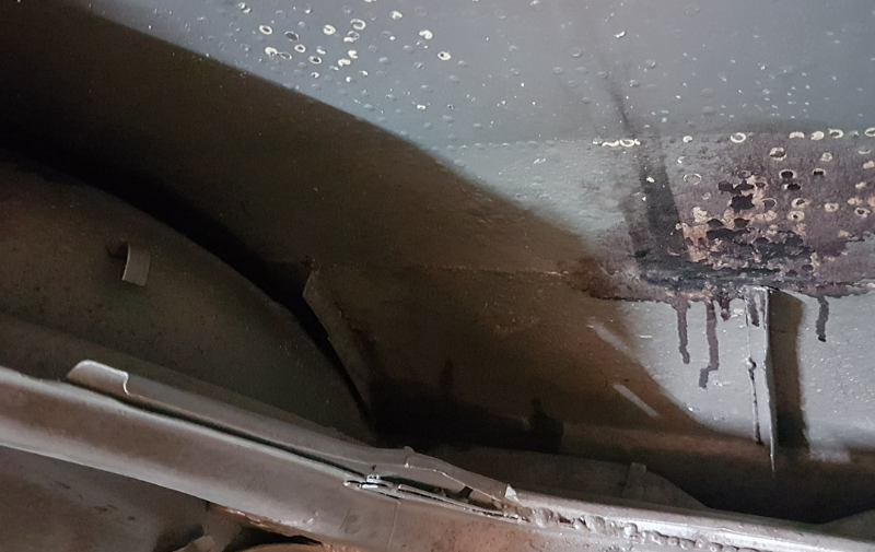 Ich habe die Position "meiner" Löcher verglichen und wundere mich, dass die Stirnwand von Uli doch anders aussieht: Der Anschlussstutzen (für das Heizgebläse ?!) bei mir scheint näher an der Fahrzeugmitte zu sitzen. Zum zweiten scheint Uli an der Stelle, bei bei mir die Löcher schon vorhanden waren, gar keine Löcher zu haben.