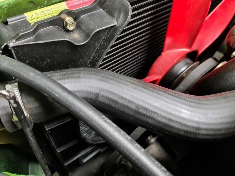 Hallo, habe den Kühler ausgebaut, gespült, die 2 großen Schlauchanschlüsse verstopft und unter Wasser mit etwas druckluft durch den Entlüftungsanschluss beaufschlagt und es blubbert nichts an der beschädigten Stelle. (nur leicht aus den 2 von mir verstopften Anschlüssen) habe wieder eingebaut und Pr...