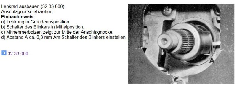 der Rückstellnocken wird beim Montieren so auf die Lenksäule gelegt, dass der Rückstellpin des Lenkstockhebels genau auf die Mitte des Nockens zeigt, so wie auf Christiophs Bild zu sehen ist. Anschließend kommt ja das Lenkrad auf die Lenksäule und wird dort mit der 22er Mutter festgezogen, so dass der Rückstellnocken quasi in seiner Position festgepresst wird.