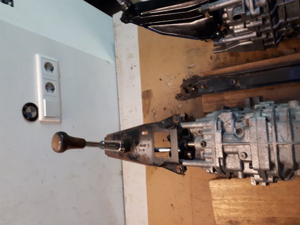 Das mittlere Getriebe ist aus einem E23, der Schalthebel ist hier 166mm lang, passt also mit dem Schaltbock ohne Umbau dann nicht zum E9.