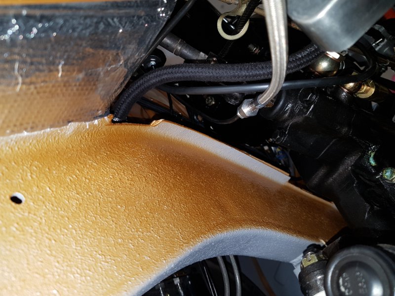 Ab 74 gibt es einen anderen Kupplungsschlauch, da der Kupplungsgeberzylinder den Abgang nach vorne hat. Hier kann man wie Waldemar geschrieben hat, eine Verlängerung mit Bremsleitung herstellen.