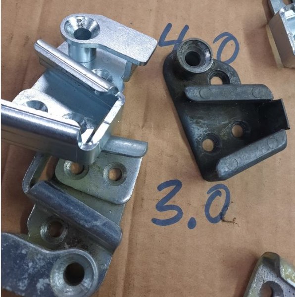 auch bei den Schlossfallen gab es im Laufe der Jahre verschiedene Ausführungen nachdem sich z.B. der hintere Anschlag mit 1,5mm Wandstärke schnell als unterdimensioniert erwies: