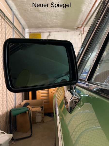 Ich beginne heute mal bei einer scheinbaren Kleinigkeit. Der elektrische Außenspiegel (nur Fahrerseite, Beifahrerseite gibt es keinen) sitzt seit Fertigstellung der Restauration nicht richtig, er sitzt schief, hängt gewissermaßen runter. Ich füge ein Bild an, schaden tut es ja nicht, und vielleicht erfreut es ja ansonsten auch das Auge.