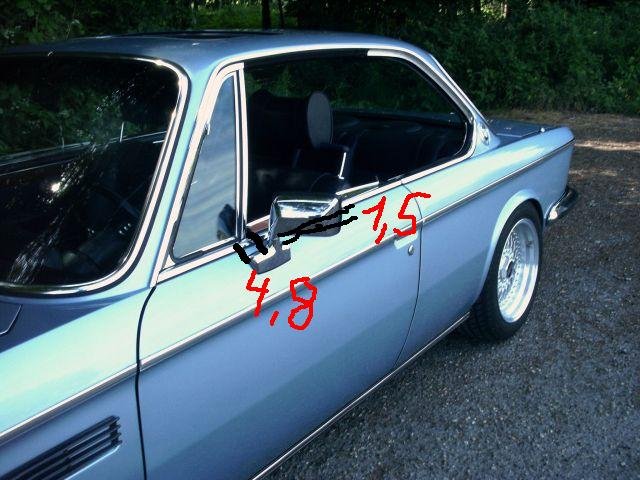 Der im zweiten Bild linke Keil ist nur zum Vergleich. Das ist der Keil vom E12 E24 Spiegel, mit der dicken schwarzen Kunststoffunterlage.