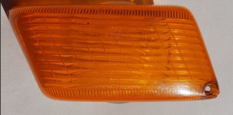 und da hätte ich noch ein paar Blinkergläser. Drei Stück für die linke Seite, die Oberfläche ist sehr schön, allerdings gibt es an den Löchern zur Befestigung kleine Ausbrüche: