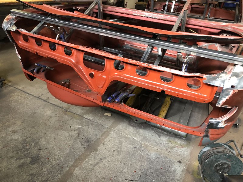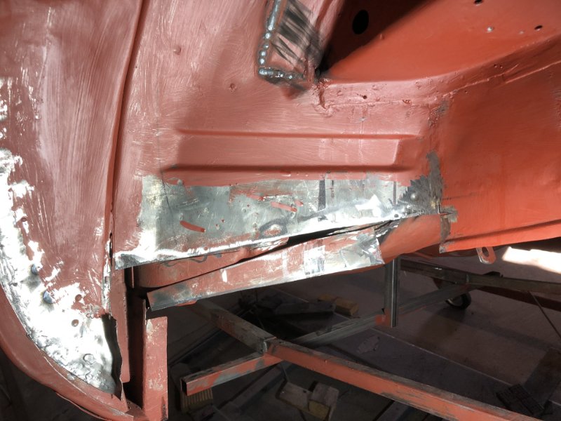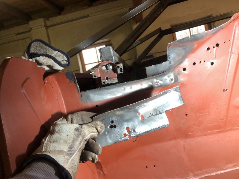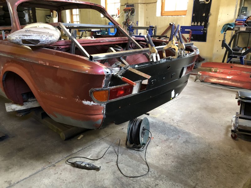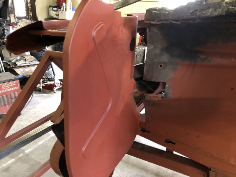 Heut' war das Heckblech zum Einpassen dran. Dank des noch stehenden Schloßträgers ging das relativ flux von der Hand. Morgen noch ein paar Feinanpassungen und dann kann eigentlich eingeschweißt werden...