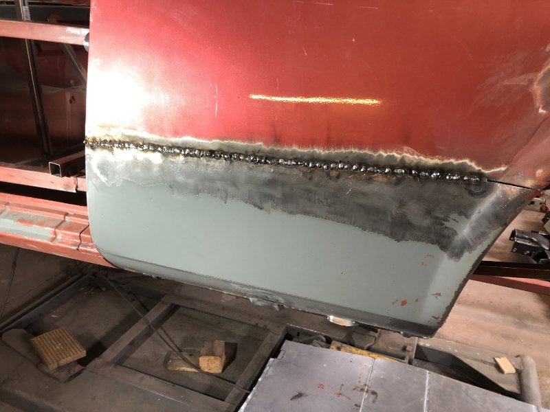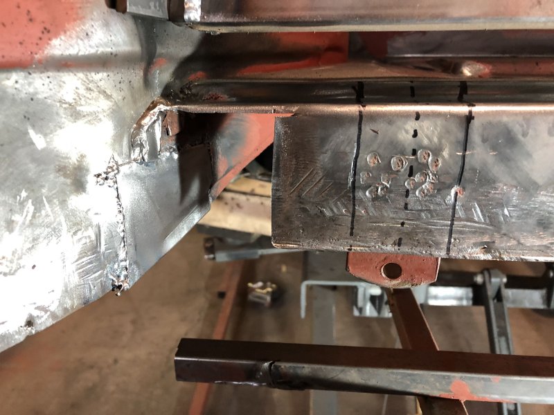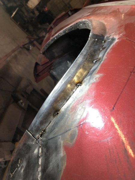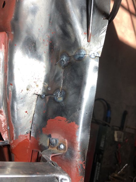 Die letzten Tage waren produktiv, das Radhaus istr soweit erstmal fertig und das linke Schwellerende ist fast ohne Verzug drin. Vieeeel Zeit gelassen zwischebn den Punkten und jeden mit der Druckluftpistole sofort abgekühlt.