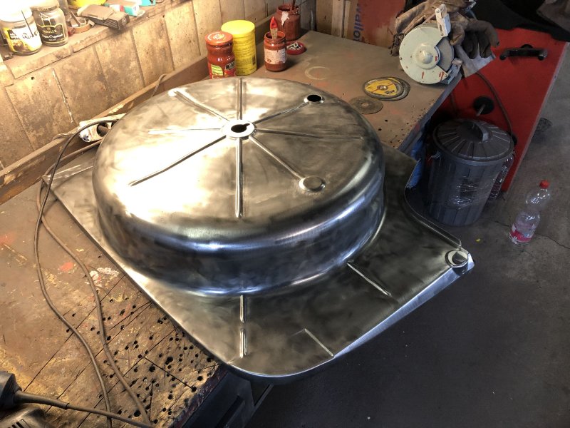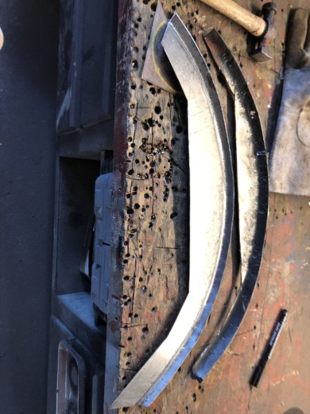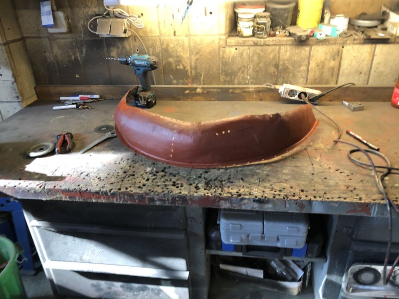 Da ich leider kein Radhaus auftreiben konnte, weder neu noch gebraucht, musste ich nun selbst zum Blech greifen und habe dabei meine Zwischenprüfung in Blechbearbeitung abgelegt... Ist ja Neuland für mich, aber mit jedem Blech steigern sich die Erfahrungswerte. Das Außenradhaus hat dann auch nur 2 Versuche gebraucht. :)))