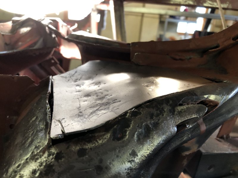 Inneres Frontblech war ein "Eigenbau" von der 1. "Restauration", hatte ich ja auf der rechten seite auch gemacht. Schön blöd! Mit dem Rep.-Blech geht' wesentlich besser, kost' nicht die Welt und sieht einfach besser aus. Man lernt halt dazu...