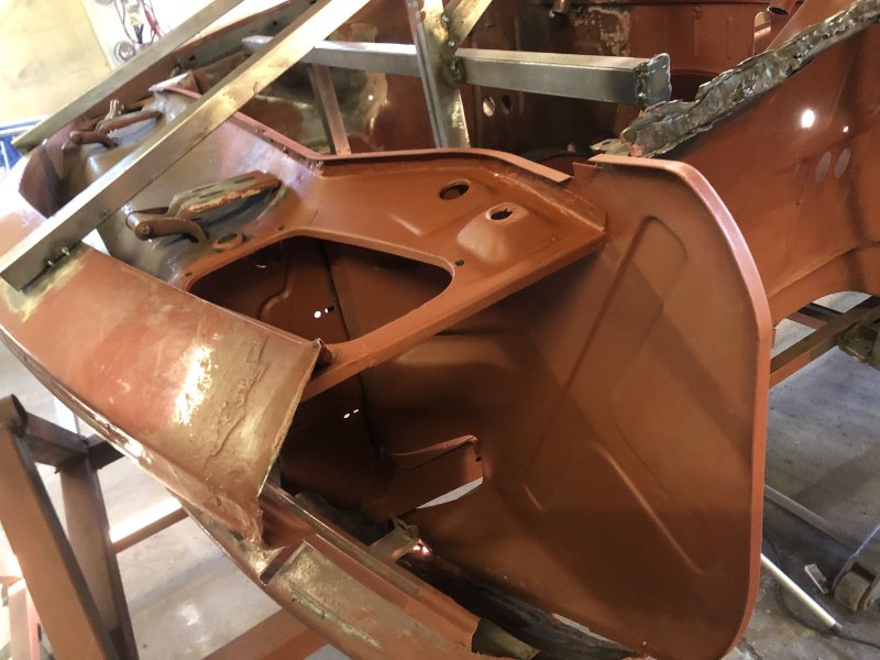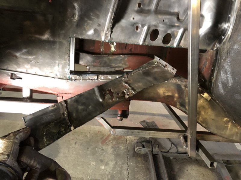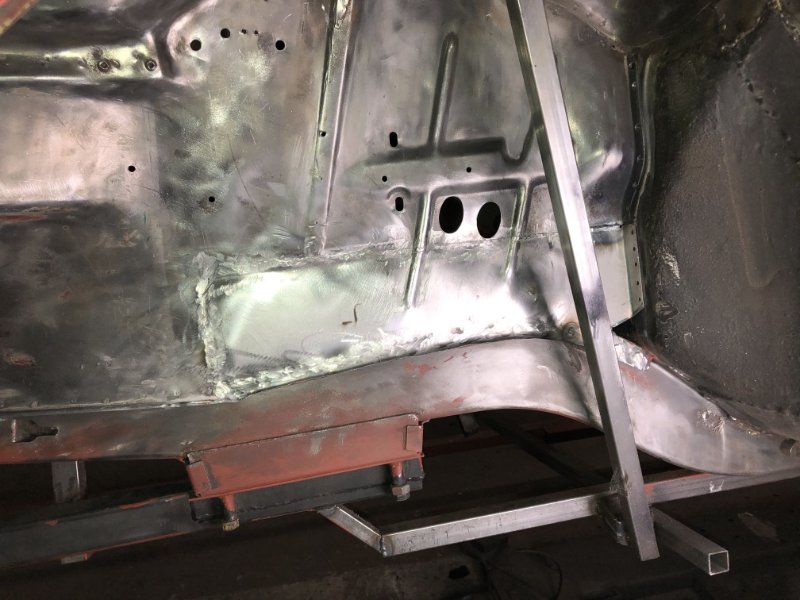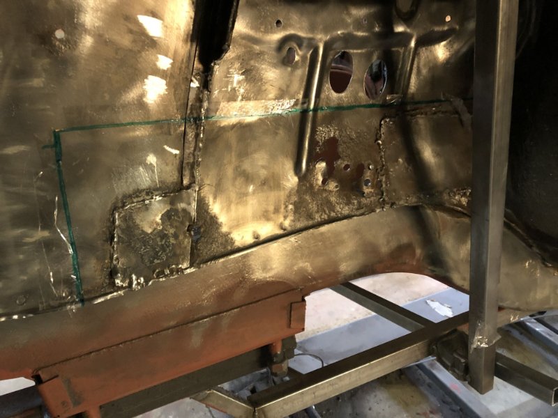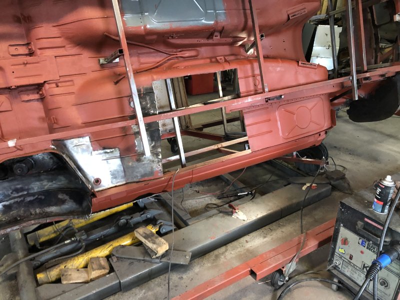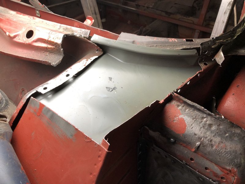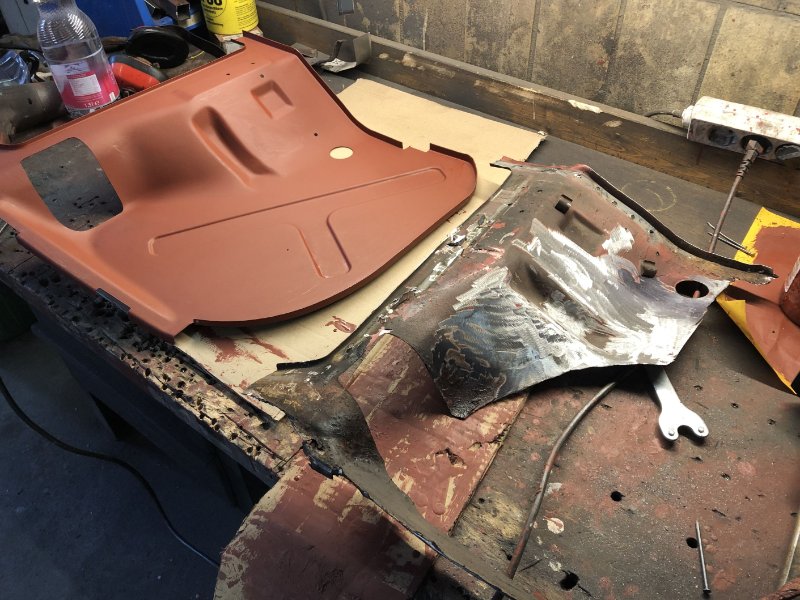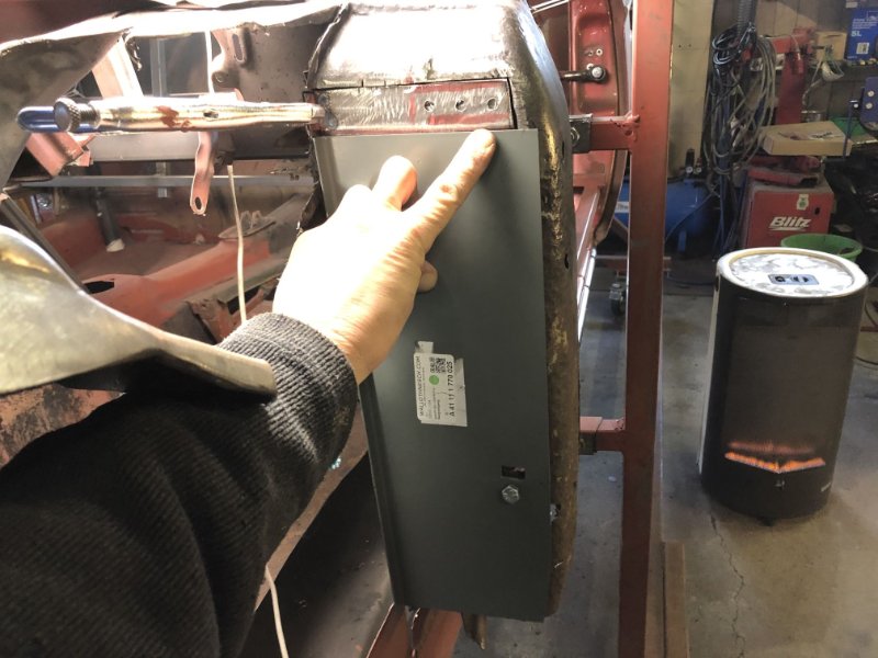 Bei kuschligen 4°C ging es heute weiter mit der Inst. Setzung des linken Motorträgers und dem Einpassen und Vorbereiten des Bodenblechs v. l.