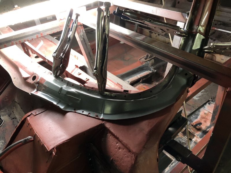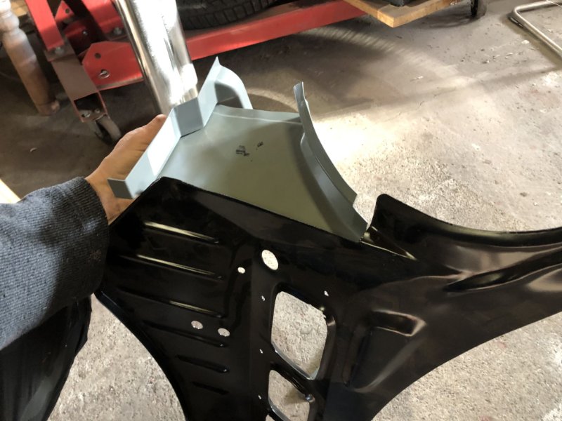 Inneres Frontblech war ein "Eigenbau" von der 1. "Restauration", hatte ich ja auf der rechten seite auch gemacht. Schön blöd! Mit dem Rep.-Blech geht' wesentlich besser, kost' nicht die Welt und sieht einfach besser aus. Man lernt halt dazu...
