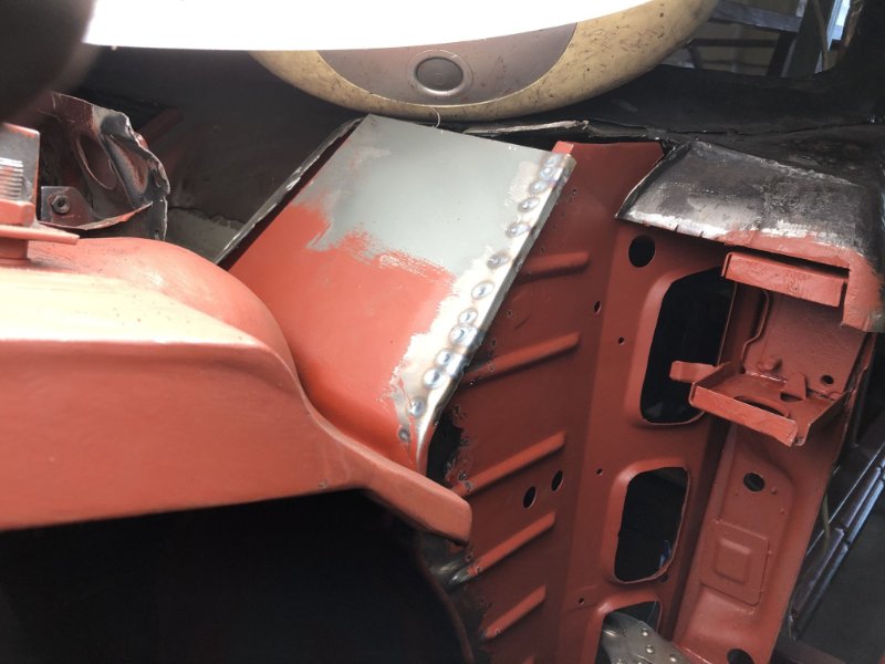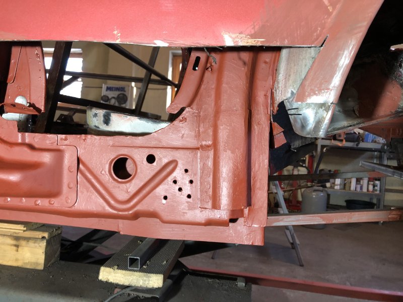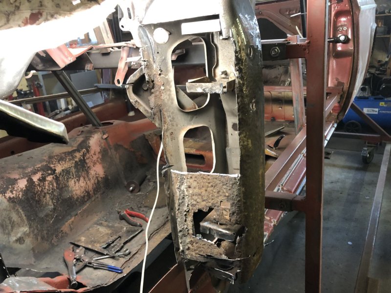 Das große Loch ist wieder zu, jetzt kann ich die A-Säule zusammenbasteln und mich dann den 3 Schwellerteilen zuwenden. Denke ich muss mir den Verstärkungsschweller wohl wirklich bestellen, was ich bisher sehen konnte sieht der unterhalb wesentlich schlimmer aus als rechts. Dann wird wohl auch der B-Säulenfuß auf dieser Seite neu müssen. Aber das sehe ich alles, wenn der Außenschweller ab is.