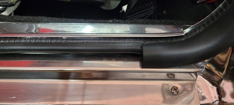Es schien, als wäre das vordere senkrechte Teilstück sowie das obere Moosgummi-Verbindungsstück schuld. Daher haben wir beide Teile vorsichtig vom Gummi-Klemmprofil abgelöst (siehe Bild 1) und den Türschluss erneut geprüft. Leider konnten wir die Tür nach wie vor nicht vollständig schließen (es wurde danach auch die obere Dichtung entfernt)[attachment=1]Bild 1.jpg[/attachment]. Da dies bereits im Herbst war, habe ich das Fahrzeug mit so weit wie möglich geschlossenen Türen eingestellt und gehofft, die Dichtung würde etwas "nachsitzen". Leider gab es keine Besserung.