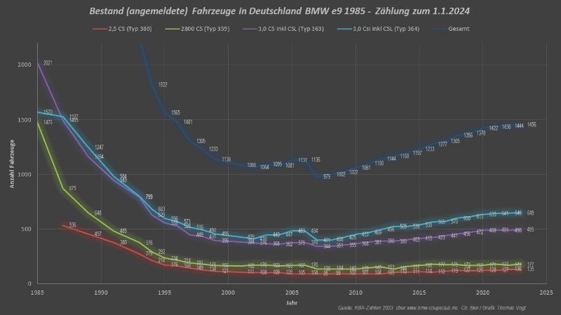 hier noch die Grafik der KBA-Zählung zum 1.1.2025: (% der in Deutschland, von den ursprünglich für den deutschen (EU) Markt gebauten Stückzahlen, noch erhaltenen Fahrzeuge; ohne UK und USA Modelle)