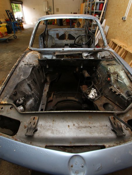 Da durch den herausgenommenen Radkasten der Kofferraum und die Reserveradmulde leicht zugänglich waren, wurden diese entlackt, entrostet und der ein oder andere Fauxpas der Vorbesitzer wieder korrigiert.