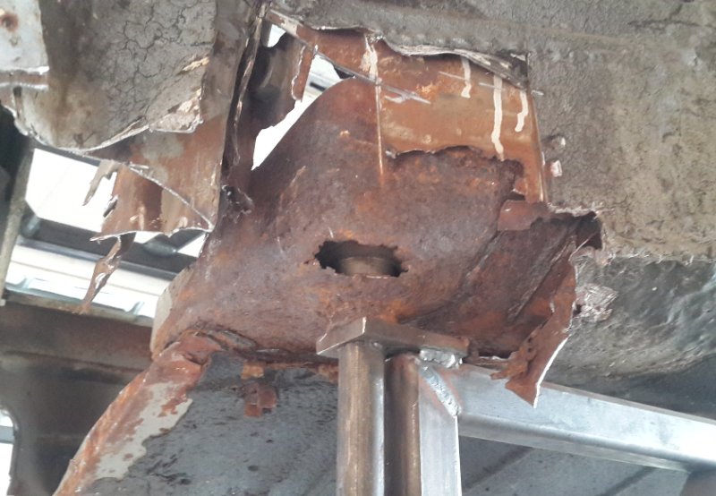 Die Achsaufnahme wurde wieder instand gesetzt und anschließend das Bodenblech im Font nachgearbeitet.