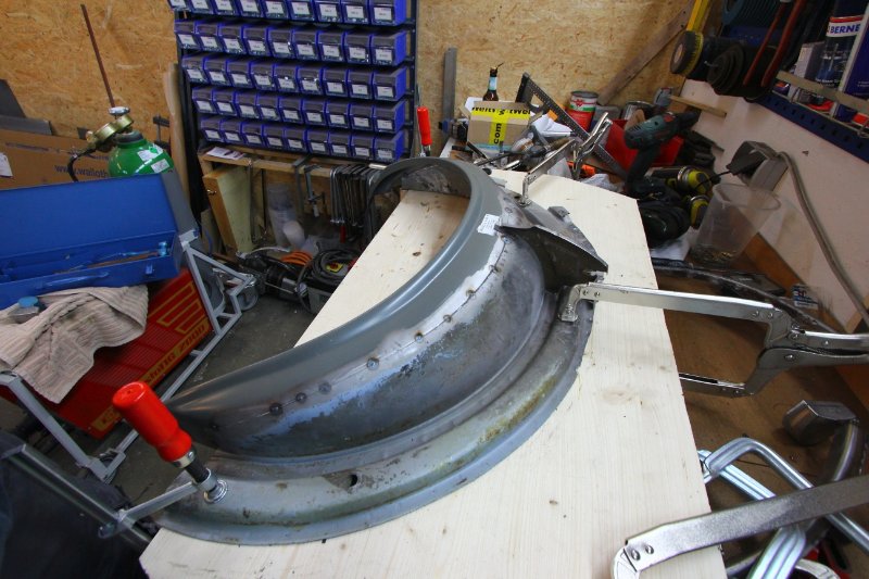 Um den Radkasten überhaupt irgendwo ausrichten zu können, musste erstmal die Spritzwand ...