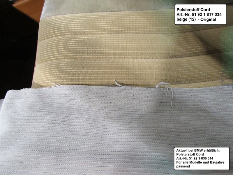 letztes Jahr konnte man noch einige Stoffe direkt bei BMW bekommen. Dieses Jahr gab es zumindest keinen schwarzen Velours mehr. Wer liefert aktuell die "besten" Veloursalternativen (schwarzes Velours und Nyloncord) für eine schwarze Innenausstattung eines NFL Models aus 74?