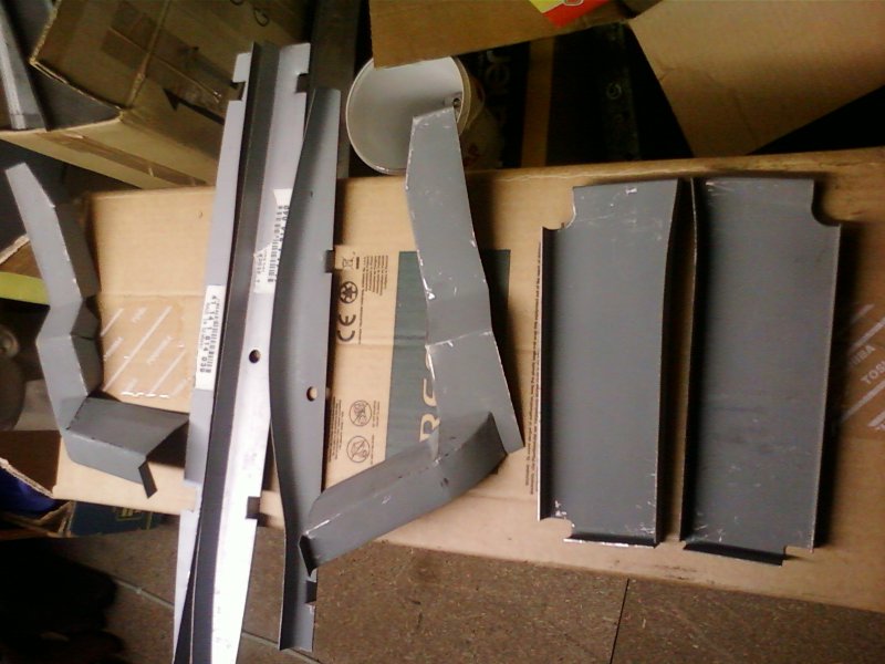 Das "Bodenblech" unter dem Radhaus ist hier im Bild zu sehen. Als Größenvergleich hab ich auch noch die Spritzwandverlängerungen daneben gelegt.
