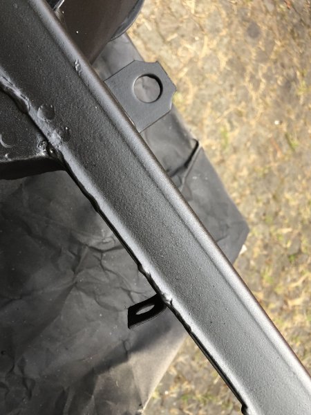 Heute kam der Lack drauf, macht nen "stabilen" Eindruck nach der Trocknung, sieht in echt ein bisschen wie 'ne Pulverung aus, auf den Fotos vielleicht nicht so gut zu erkennen, fühlt sich auch ein wenig so an.