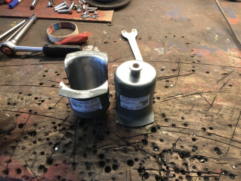 Also, der Vorbau war bei mir nicht weggebaut, im Gegenteil, die Motorträger dienten als Fixpunkt und Aufnahme des Drehgestells. Die Halter der Motorhaubenstützen waren von Anfang an fest miteinander verbunden und sind es immer noch, ebenso die Aufnahmen für die Domlager. Also dürfte da "eigentlich" alles passen. Ob evtl. in der gesamten Karo ein Verzug durch die ewige Hin- und Herdreherei entstanden ist werde ich erst noch sehen...