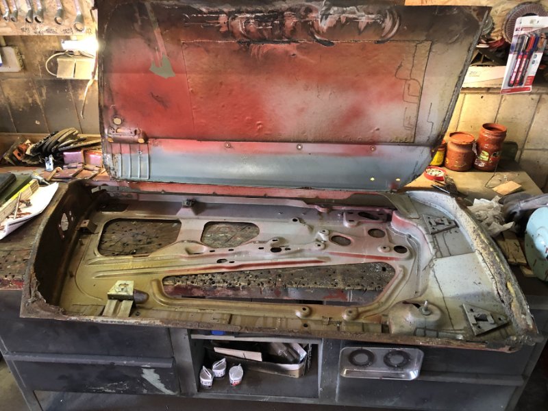 Gleich auch noch das Türblech vom Rahmen getrennt, ging richtig gut, keine halbe Stunde da war es ab. Dann gestern noch den Rahmen an sich von ein paar oberflächlichen Roststellen befreit, diese Stellen vorsorglich mit Rostumwandler/Epoxy-Grund behandelt und angefangen die durch- und/oder weggrosteten Bereiche inst. zu setzen. Dann haben Frauchen und ich unseren 1. Pieks in den Arm gekriegt und ich muss erstmal übers WE eine Pause einlegen, weiß gar nicht was ich den ganzen Tag machen soll wenn ich nicht in der Werkstatt bin, zumal heute der 1. Mai, also der 1. Jahrestag des Beginns der eigentlichen Restauration ist... :=))
