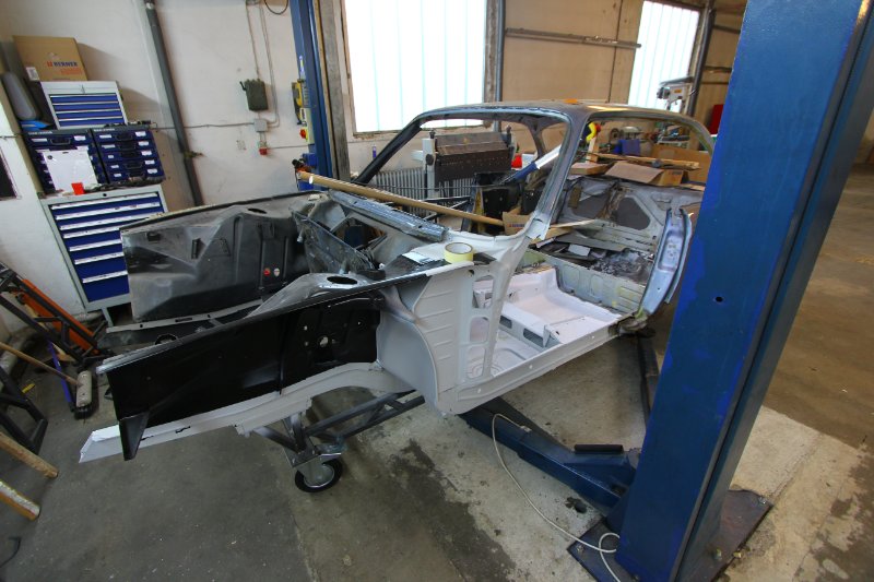 Auch auf der rechten Seite musst du die getriebeaufnahme saniert, entlackt und lackiert werden. Genauso wie auf der anderen Seite wurde hier der äußere Teil der Spritzwand erneuert eingeschweißt und lackiert werden.