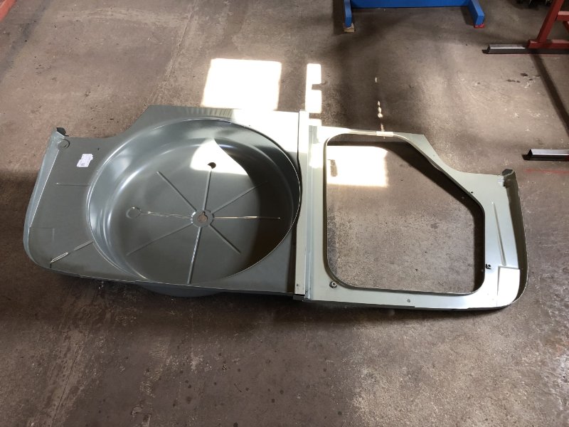 Radhaus v. l. ist so gut wie fertig. Eigentlich könnten jetzt die Kotflügel wieder dran, aber 1. muss der Linke noch inst. gesetzt werden (Blech ist schon da) und 2. muss der Wagen erst vom Drehspieß runter, damit ich Türen und Motorhaube zum "Anpassen" der Spaltmaße montieren kann. das wird noch lustig, da ja der Vorgänger was das angeht schon Einiges vermurkst hat und da schon nix gepasst hat...