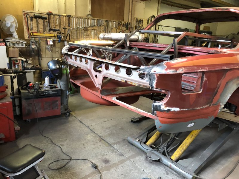 Heut' war das Heckblech zum Einpassen dran. Dank des noch stehenden Schloßträgers ging das relativ flux von der Hand. Morgen noch ein paar Feinanpassungen und dann kann eigentlich eingeschweißt werden...