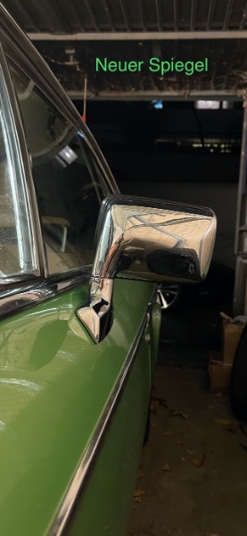 Ich habe mir die Sache jetzt vor Ort genau angesehen. Dazu vorab zwei Informationen: Der neu verbaute Außenspiegel stammt aus sehr solider Quelle hier im Forum ;-) ;-) ;-) und ist sowohl von der Teilenummer her als auch den technischen und optischen Details kein E12-Spiegel, sondern der originale Spiegel, mindestens für diese Bauzeit und Baureihen E3/E9. Ich habe den alten Spiegel noch in meiner Teilesammlung und sie beide verglichen: Bis auf zwei innere Löcher im Fuß gibt es zwischen Alt und Neu keinen Unterschied.
