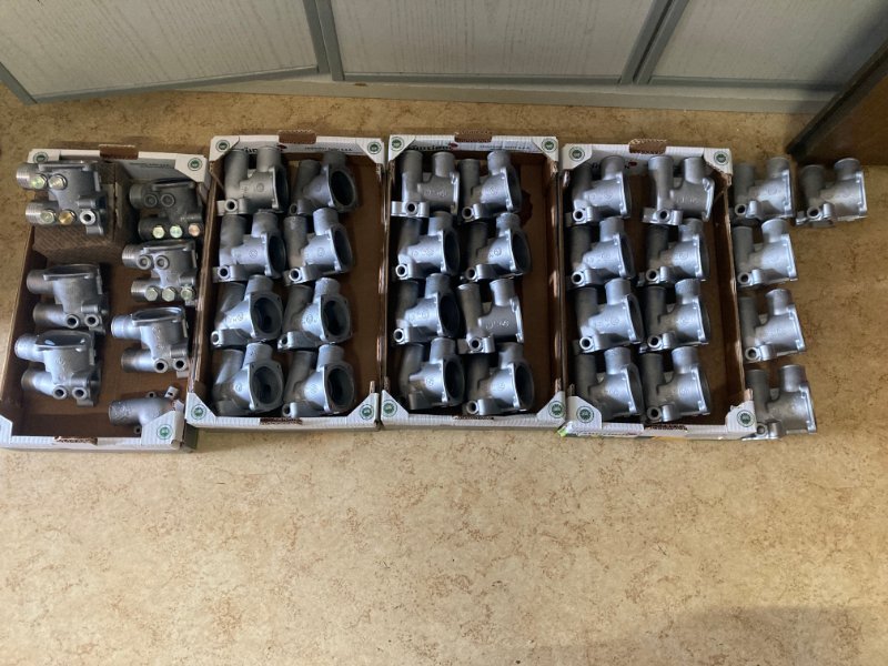 Anbei noch ein Bild. Das von dir beschriebene E34 Thermostatgehäuse ist oben links zu sehen. Die Gehäuse gab es dann auch noch mit 2 oder 3 Löchern, und eben dem Baujahr entsprechend mit einem Loch......