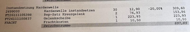 Es gibt 2 unterschiedliche Kreuzgelenke. Die einen werden mit Sicherungsringen gehalten, bei unseren Coupes werden die Kreuzgelenke jedoch verstemmt. Sollten da Blechkreuzgelenke statt Stahlkreuzgelenke von Febi oder Meyle verwendet worden sein, wäre das sehr gefährlich und fahrlässig. Diese billigen für 30 oder 40 Euro sind nicht fürs verstemmen geeignet. Die passenden kosten inzwischen knapp unter 90 Euro beim Kardanwellenbauer meines Vertrauens.