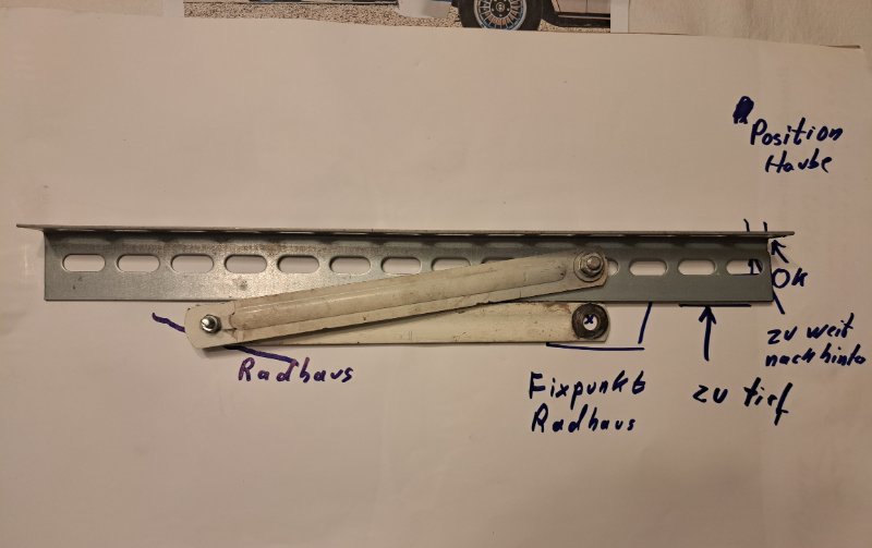 - Punkt, an dem die linke Stange auf der Karosserie aufliegt