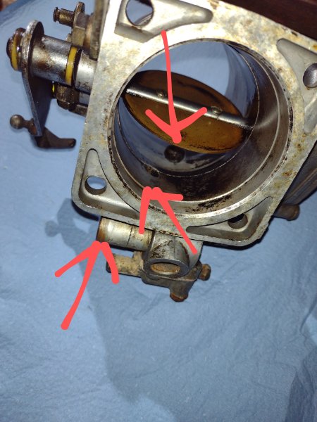 Hier Bilder meiner Ersatzdrosselklappe...ich vermute mit falschem Poti was mir angedreht wurde. Man erkennt den Anschluss für Kurbelgehäuseentlüftung ==> Info an Willy!
