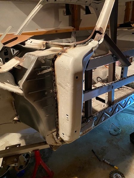 Der Mittelschweller ist nun neu eingesetzt, sowie die A- Säüle und die B-Säule.