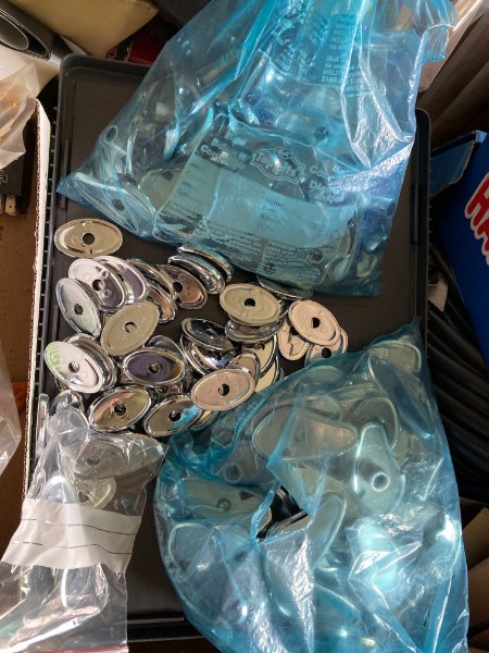 Von den neueren, die zu meinen im Bild rechten Armlehnenoberteil passen hab ich auch noch ein paar NOS Kappen in guter Chromqualität aber mit leichten Lagerspuren wo sich eben nicht nach einer Saison der Chrom löst wie bei den aktuell lieferbaren Nachfertigungen. Diese kosten ebenfalls 20 Euro.