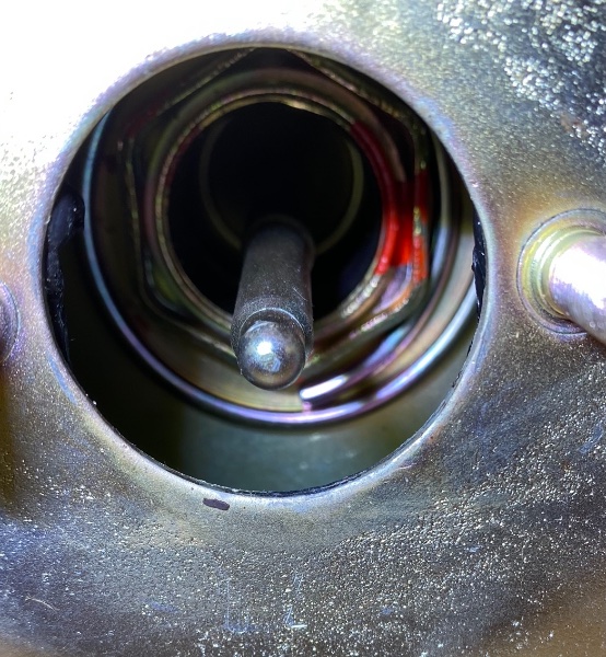 Ersteren habe ich aufgemacht. Hierzu habe ich ganz vorsichtig die Bördelung aufgebogen. Das Innenleben ist relativ unspektakulär: Eine Große Feder, eine Gummimembran (die nahezu unkaputtbar aussieht), einen Zylinder und ein Ventil, welches durch schließen den Unterdruck zur Verstärkung der Bremskraft bei Betätigung des Bremspedals vor dem Zylinder hält, welcher dann so gegen die Feder angezogen wird und so die Verstärkende Wirkung erbringt.