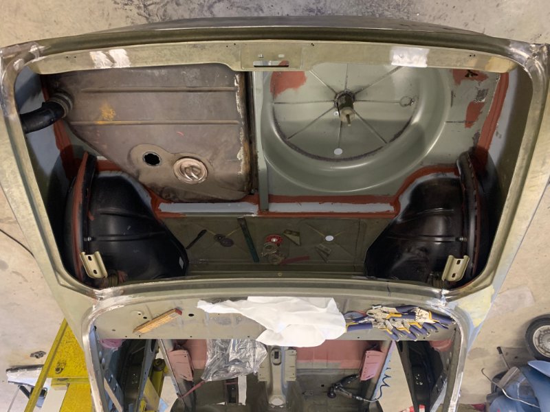 Das hochstehende Blech in der Mitte Rücksitze ist ein 2800 CS Blech, die waren später viel kürzer.