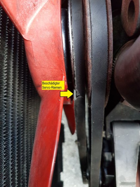 kein Wunder dass der Servo-Riemen beschädigt war - die letzte Werkstatt hatte einen AV13x1055 Keilriemen fürs Servo eingebaut. Jetzt funktioniert es besser :-).