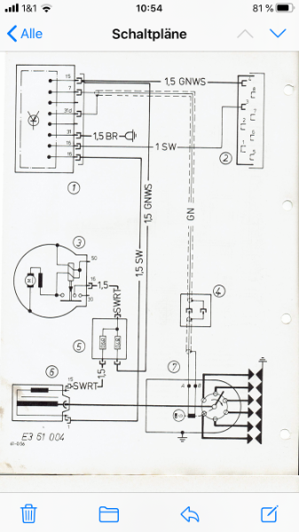 2) Ein Widerstand ist an der alten Kontaktzündanlage verbaut gewesen wie auf dem Foto. Eingang KL15 „rot/Sw“ und Ausgang „grün“ zurück in den Kabelbaum der Karosse. Was liegt an diesem grünen Kabel an, welche Funktion hat es?