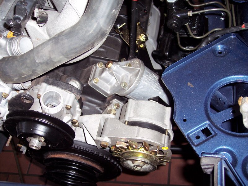 Erst wenn ich die Lichtmaschine ausgebaut habe kann ich das Ölfiltergehäuse nach oben rausnehmen.