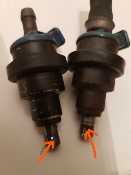 es sind jetzt 6 Ventile geworden ,die laut Protokoll in Ordnung sind. Äußerlich sehen die genau wie vorher aus, allerdings haben sie neue Schlauchanschlüsse bekommen. Leider springt er immer noch nicht an, da meine beiden Pumpen fehlerhaft sind. Die eine tropft aus allen erdenklichen Ritzen, die andere ist zwar dicht und fördert auch leise und gut, aber bei einem Druck von 0,75 ist Ende.