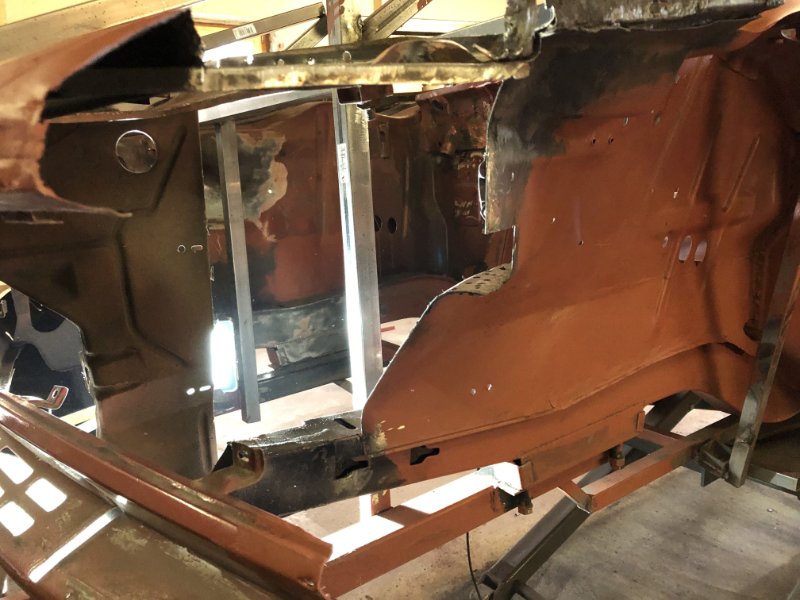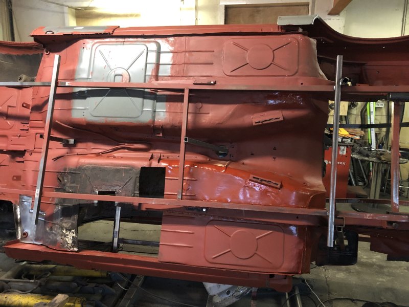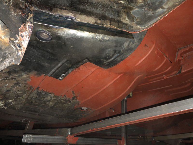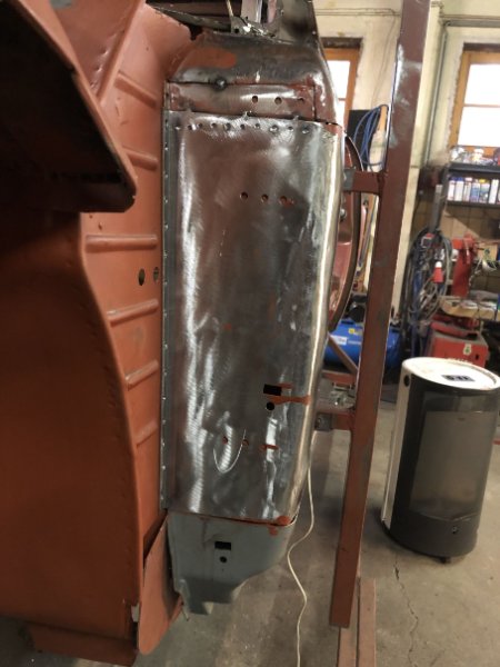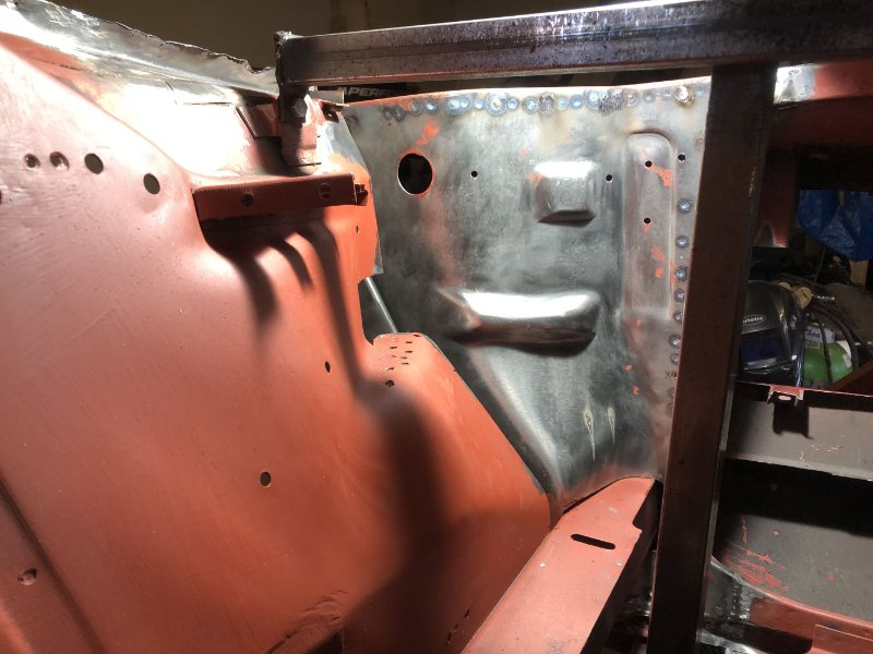 Bei kuschligen 4°C ging es heute weiter mit der Inst. Setzung des linken Motorträgers und dem Einpassen und Vorbereiten des Bodenblechs v. l.