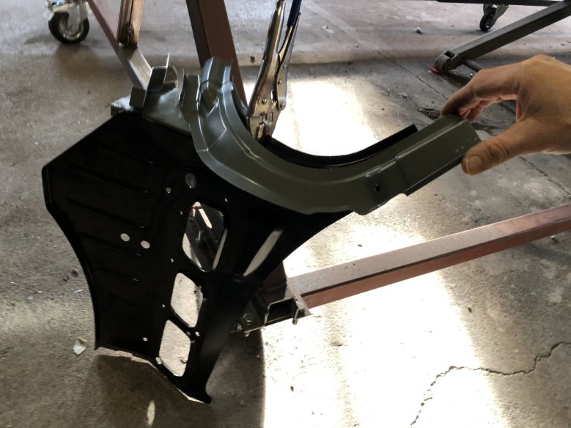 Inneres Frontblech war ein "Eigenbau" von der 1. "Restauration", hatte ich ja auf der rechten seite auch gemacht. Schön blöd! Mit dem Rep.-Blech geht' wesentlich besser, kost' nicht die Welt und sieht einfach besser aus. Man lernt halt dazu...