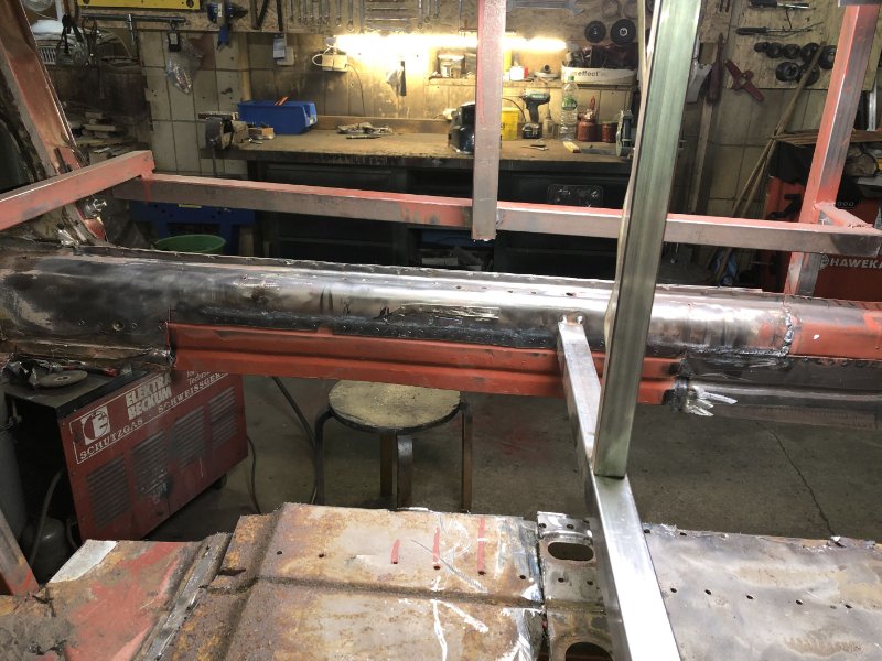 Jaaa, der Innenschweller ist soweit er bisschen gammlig war ersetzt. Fehlen noch ca. 15 cm die ich trotzdem noch machen möchte weil äußerlich ein paar Rostpickel zu finden waren. Von Innen sah er echt gut aus.