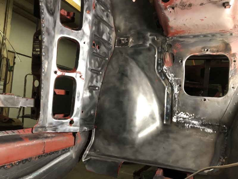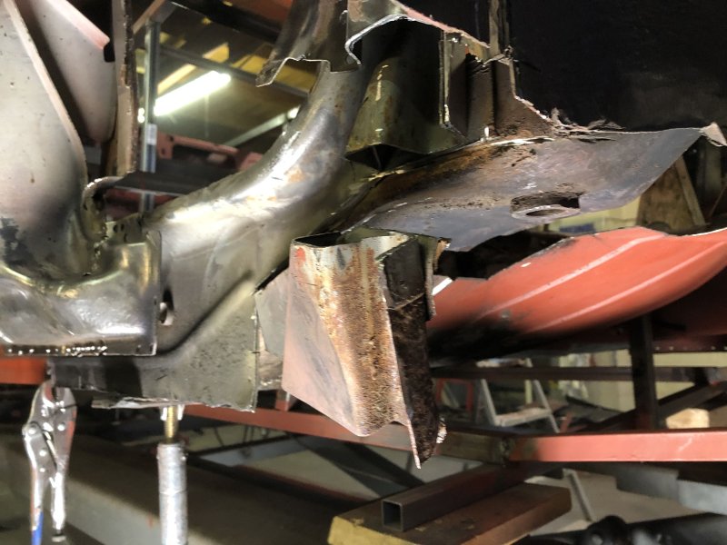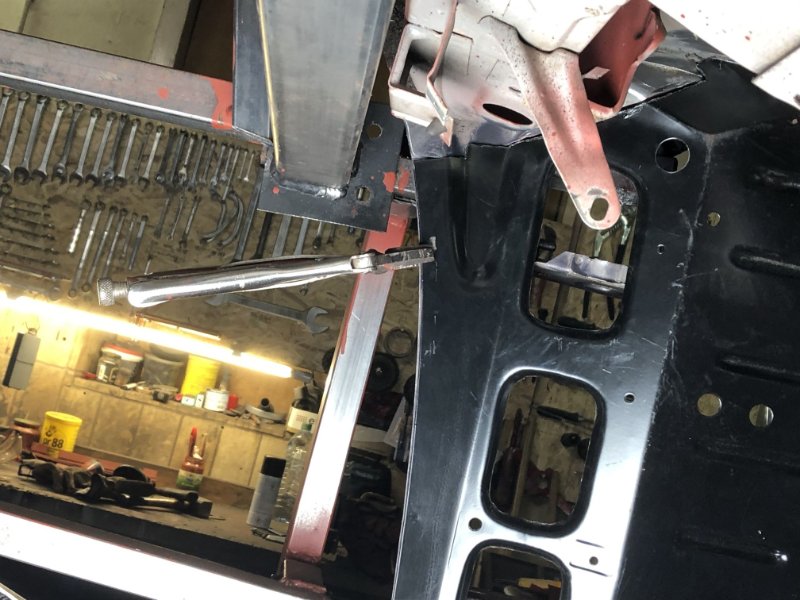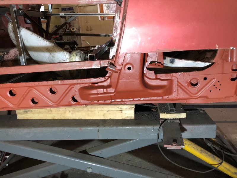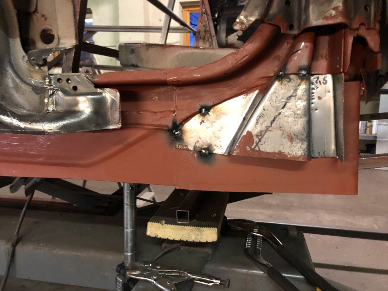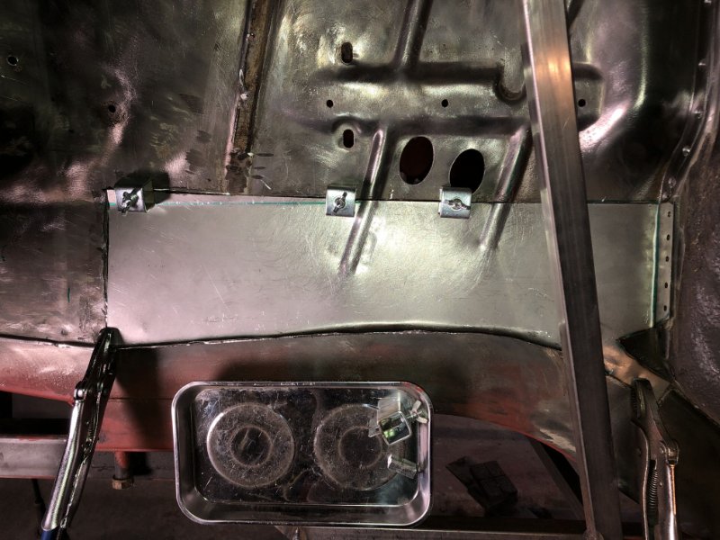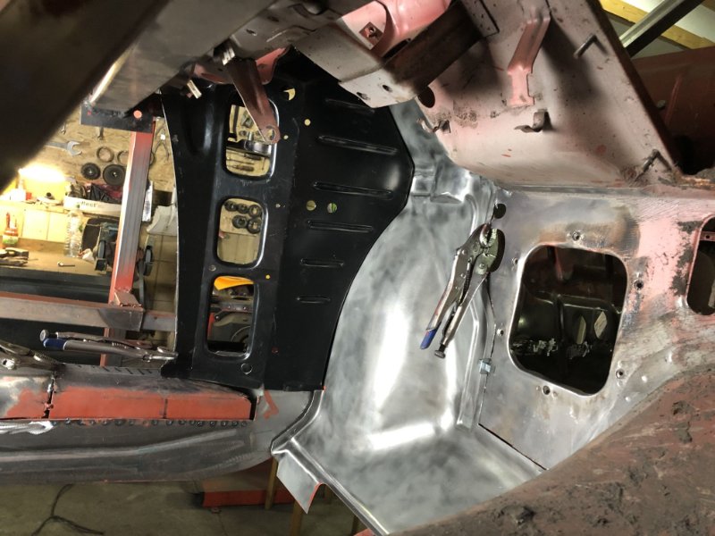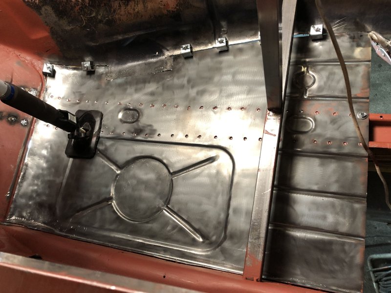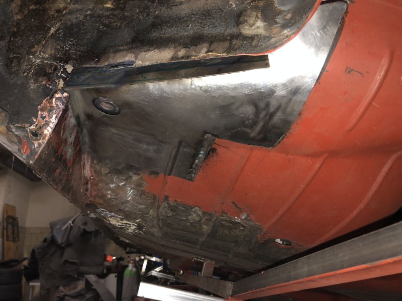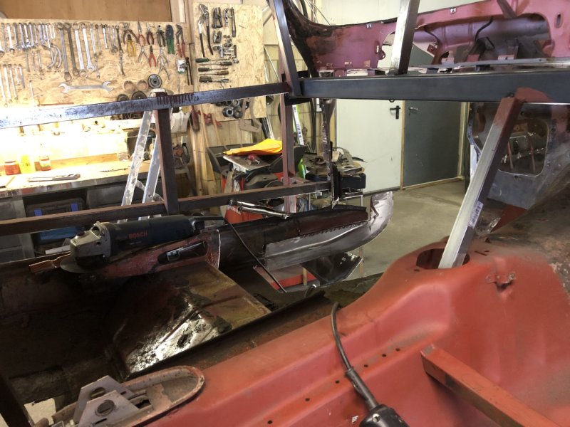 Bei kuschligen 4°C ging es heute weiter mit der Inst. Setzung des linken Motorträgers und dem Einpassen und Vorbereiten des Bodenblechs v. l.