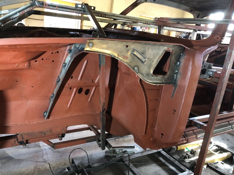 Radhaus v. l. ist so gut wie fertig. Eigentlich könnten jetzt die Kotflügel wieder dran, aber 1. muss der Linke noch inst. gesetzt werden (Blech ist schon da) und 2. muss der Wagen erst vom Drehspieß runter, damit ich Türen und Motorhaube zum "Anpassen" der Spaltmaße montieren kann. das wird noch lustig, da ja der Vorgänger was das angeht schon Einiges vermurkst hat und da schon nix gepasst hat...