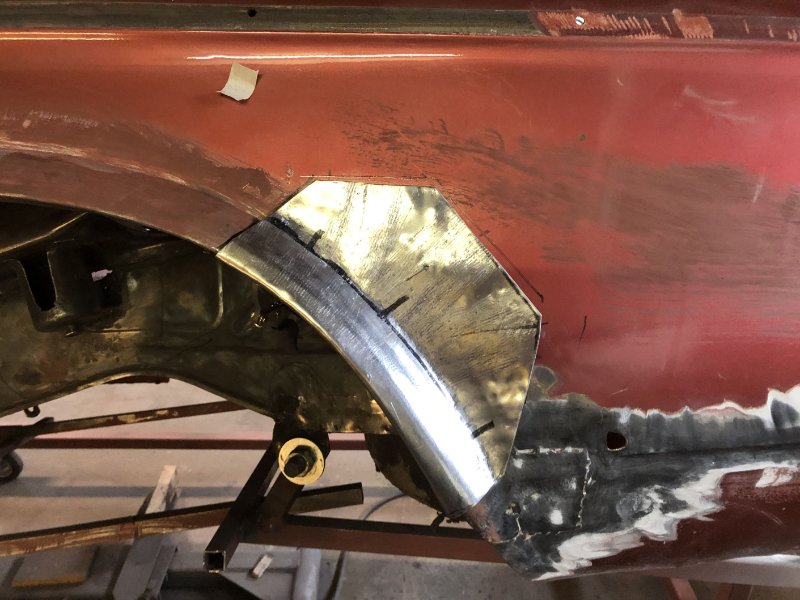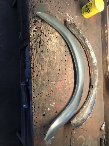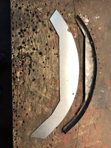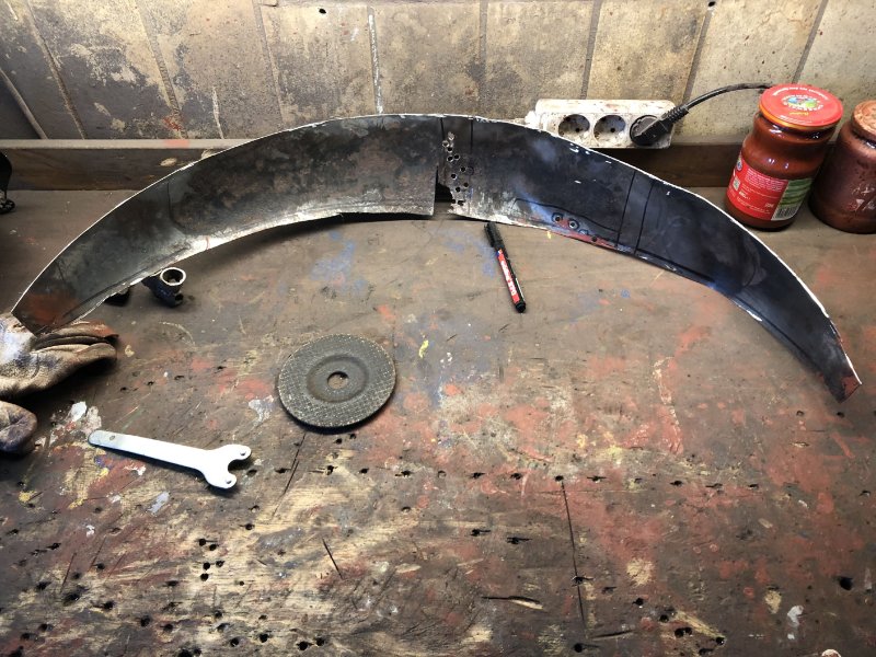Da ich leider kein Radhaus auftreiben konnte, weder neu noch gebraucht, musste ich nun selbst zum Blech greifen und habe dabei meine Zwischenprüfung in Blechbearbeitung abgelegt... Ist ja Neuland für mich, aber mit jedem Blech steigern sich die Erfahrungswerte. Das Außenradhaus hat dann auch nur 2 Versuche gebraucht. :)))