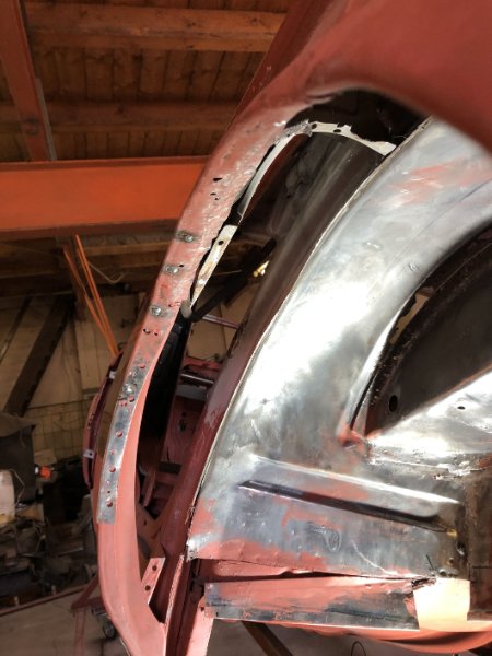 Heut' war das Heckblech zum Einpassen dran. Dank des noch stehenden Schloßträgers ging das relativ flux von der Hand. Morgen noch ein paar Feinanpassungen und dann kann eigentlich eingeschweißt werden...